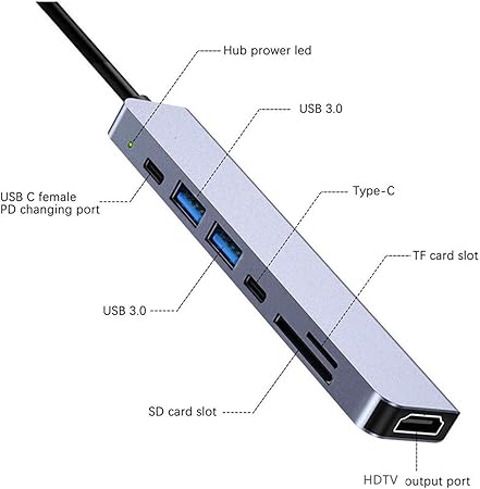 Daytona AIRSKY HC-13C Macbook Uyumlu Type-C to 2* USB 3.0 SD TF 4K HD 1080p HDMI PD Kart Okuyucu Çevirici Hub Adaptör