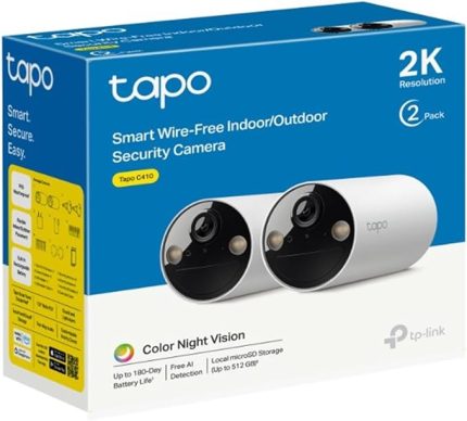 TP-Link C410 2-pack, 2K 3MP, Renkli Gece Görüşü, Şarj Edilebilir, Solar Panel Destekli, IP65, Yerel/Bulut Depolama, 110° Açılı, Işıklı ve Sesli Alarm, Kablosuz Bataryalı Güvenlik Kamerası
