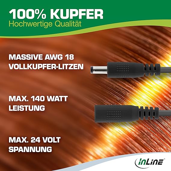 DC Uzatma Kablosu, DC Fiş/Soket 5,5×2,5mm, AWG 18, Siyah, 2m