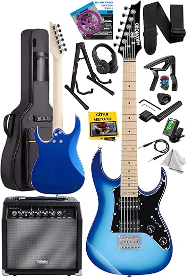DE-150BL-35AMP Maple Klavye HH Yüksek Kaliteli 35W Amfili Elektro Gitar Seti