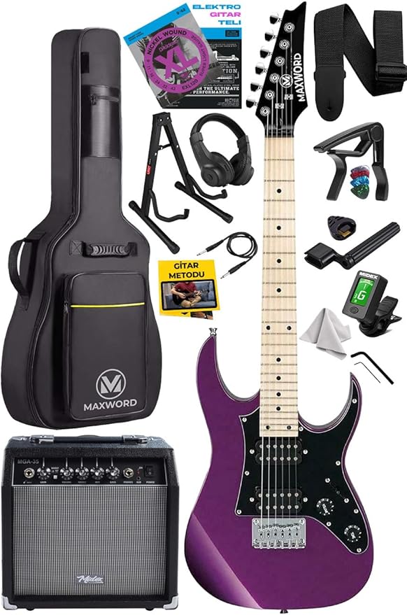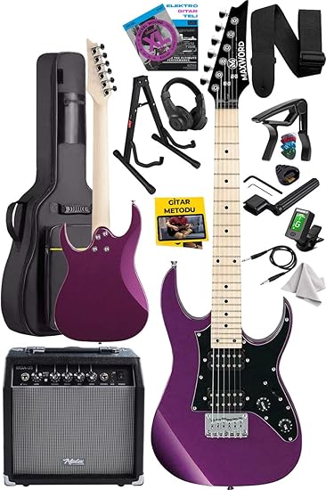 DE-150PU-35AMP Maple Klavye HH Yüksek Kaliteli 35W Amfili Elektro Gitar Seti