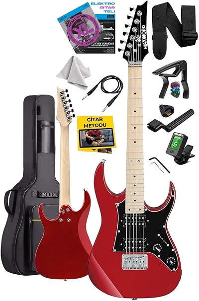 DE-150RD Maple Klavye HH Manyetik Yüksek Kaliteli Elektro Gitar Seti