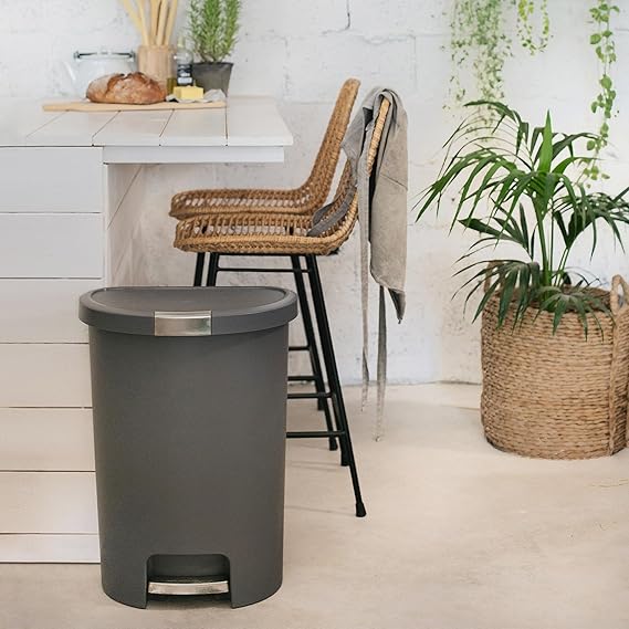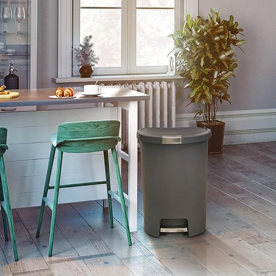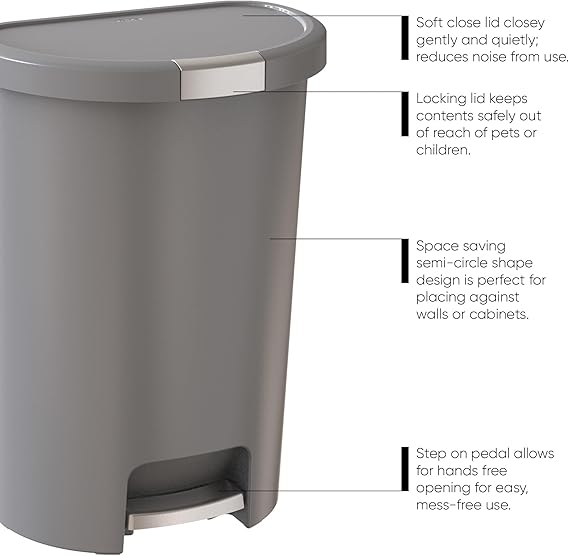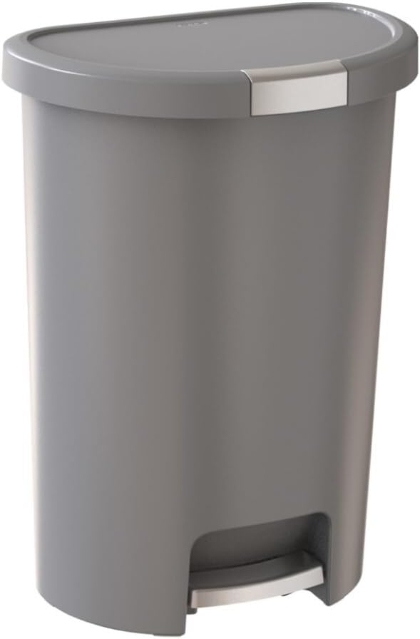 Deco 13 Galon Step-On Çöp Kutusu ve Kapaklı Geri Dönüşüm Kutusu, Mutfak Atıkları için, Gümüş