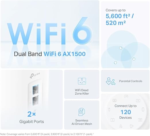 Deco X10 2-pack, AX1500 Mbps, 360 m²’ye kadar Kapsama Alanı, 120 Cihaza Kadar Bağlantı, Gigabit Portlu, Mobil Uygulama ile Kolay Kurulum,Yapay Zeka Destekli Wi-Fi 6 Mesh Sistemi