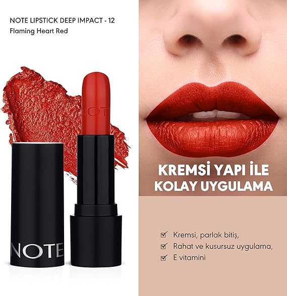 Deep Impact Lipstick 12 Flaming Heart Red Kremsi Dokulu Yarı Parlak Ruj, Kırmızı