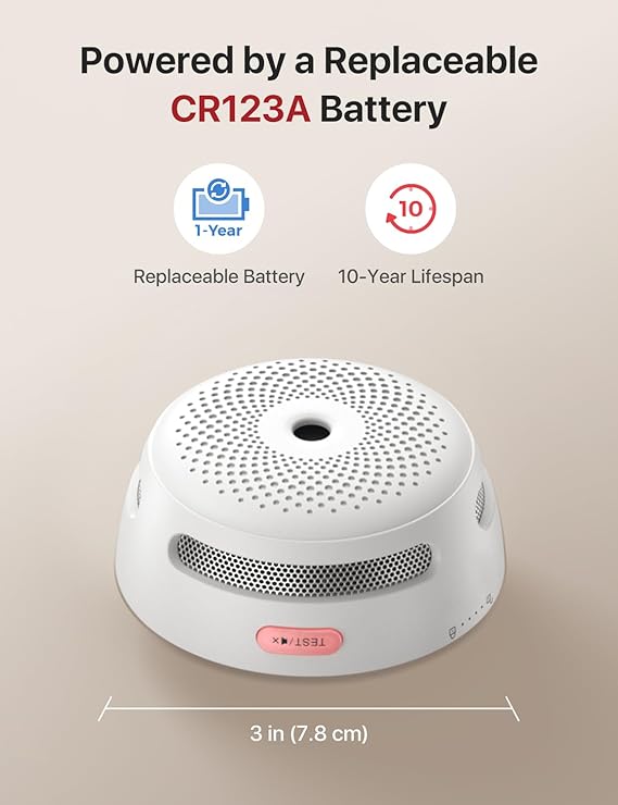 Değiştirilebilir Pilli Akıllı Duman Dedektörü Yangın Alarmı, Wi-Fi Duman Dedektörü, Gerçek Zamanlı Uygulama Bildirimleri, XS01-WX, 1’li Paket
