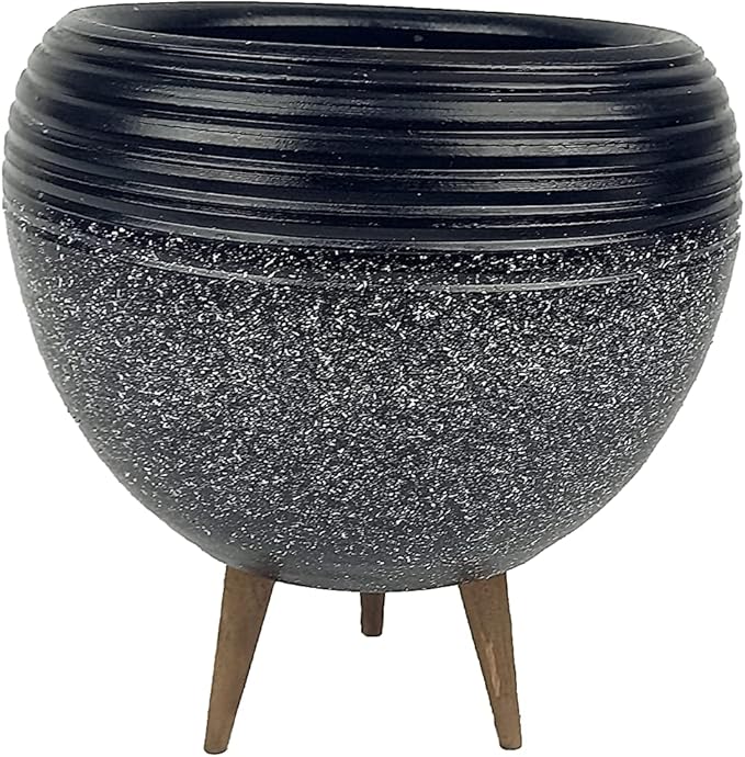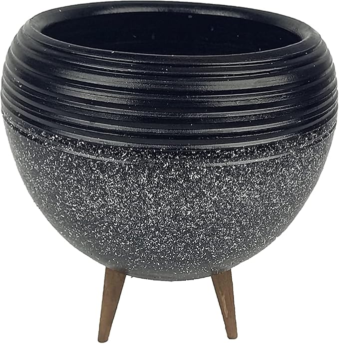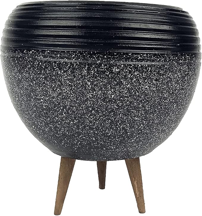 Dekorasyon Siyah Granit Küp Saksı Saksılık Salon Çiçeklik Büyük Boy 3 Ayaklı