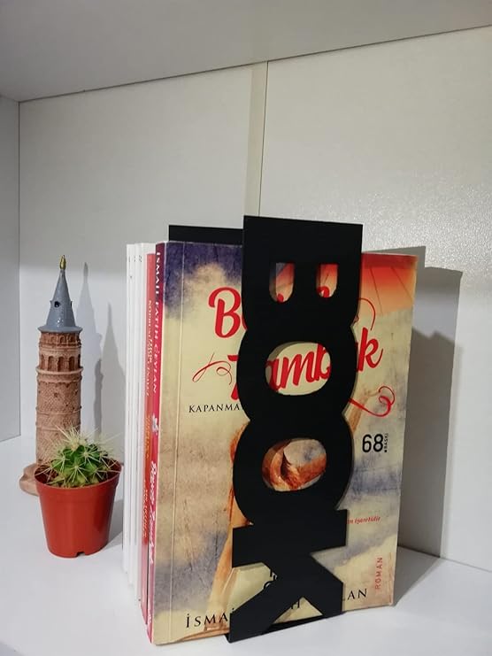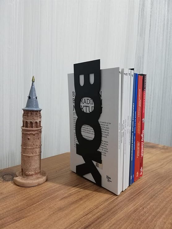 RİSİNGMABER Dekoratif Dikey Book Yazı Tasarımlı Kitap Tutucu Desteği Mat Siyah