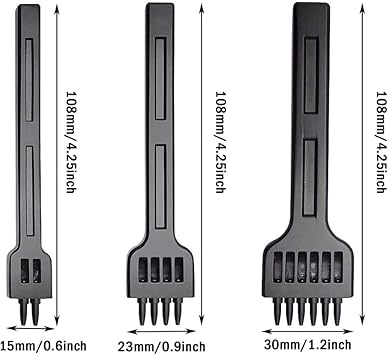 ★ Paket içeriği: Pakette 3 adet deri zımba. Çoğu deri malzemenin delme gereksinimlerini hızlı bir şekilde karşılayabilen 4 mm diş aralığı ile farklı özelliklere sahip üç adet 2/4/6 pençe zımbasından oluşur.