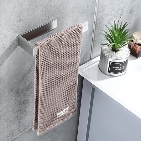 Delmeden havlu askısı, 304 paslanmaz çelik, kendinden yapışkanlı havlu askısı, banyo için (fırçalanmış gümüş, delmeden)