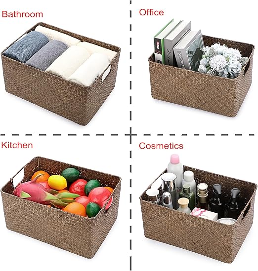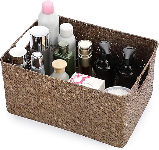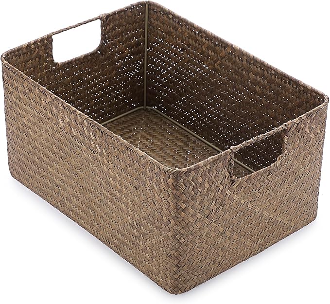 Deniz yosunundan saklama sepeti, oturma odası, çalışma masası için, dekoratif kutu, dokuma hasır sepet, havlu sepeti, dikdörtgen, banyo saklama kutusu, raflar ve çalışma masaları