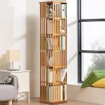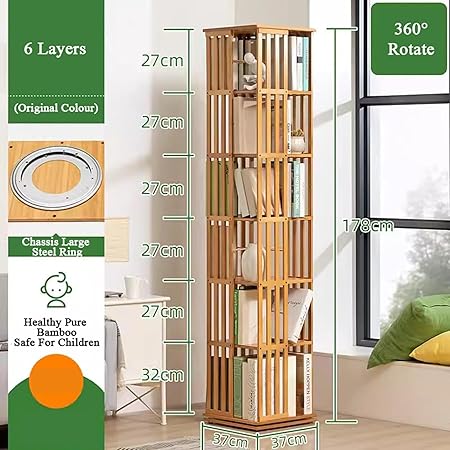 Depolama için 360 Dönen Ahşap Kitaplık 6 Katlı Dönebilen Ekran Standı Yüksek Yoğunluklu Zemin Ayakta nizer (Ahşap Renk)
