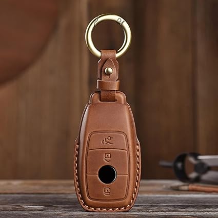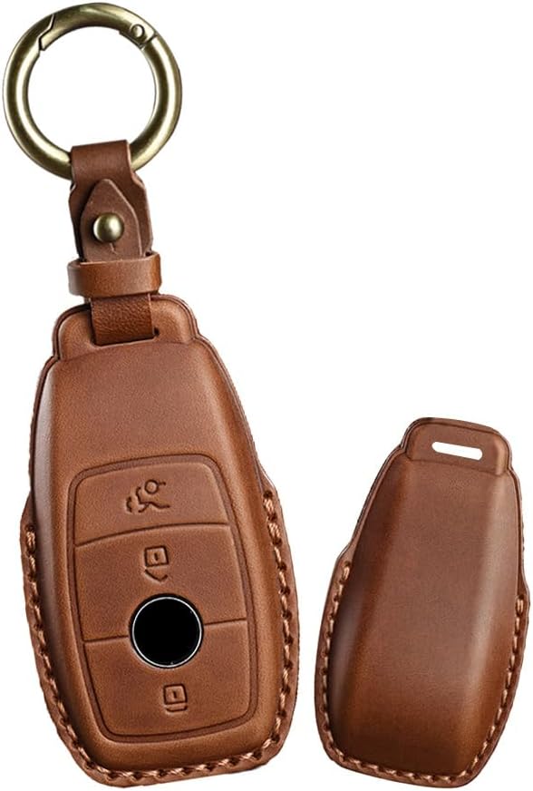 Deri anahtar kılıfı kapak araba anahtarı kılıfı Mercedes Benz E C S GLC sınıfı E200 E400 E63 W213 S550 S560 C260 A200 AMG anahtarlık koruyucu kılıf anahtar kılıfı 3 tuşlu kahverengi