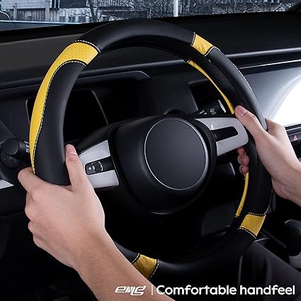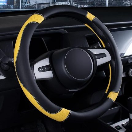 Araba, Kamyon, SUV ve Daha Fazlası için Direksiyon Kılıfı, Evrensel 15 inç, Kaymaz, Sportif ve Yumuşak (Siyah ve Sarı)