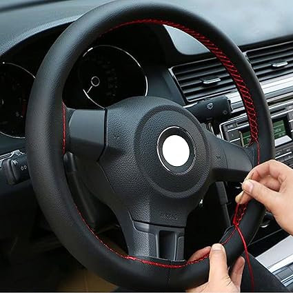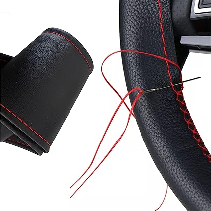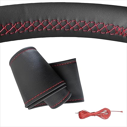 Deri Dikme Direksiyon Kılıfı Siyah Kırmızı Dikişli
