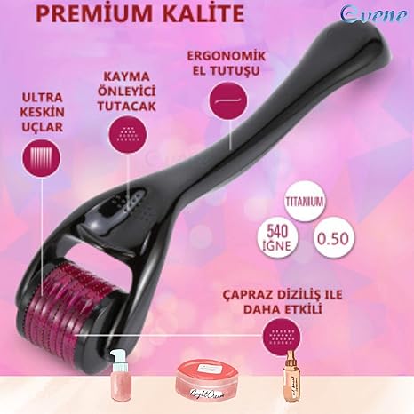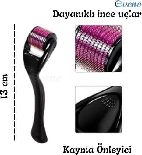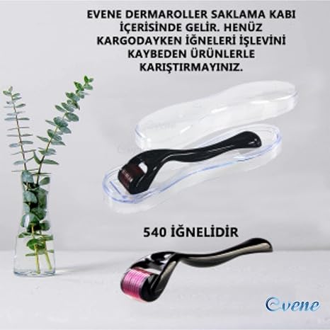 Evene Siyah Dermaroller Cilt Saç Bakımı Saklama Kaplı Keskin Kaliteli Çapraz Dizilim 540 Uçlu