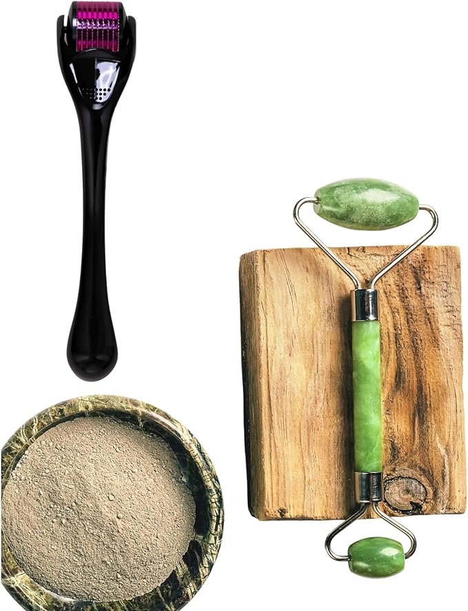 Dermaroller Cilt Saç Yüz Bakımı Saklama Kaplı 540 İğneli + Jade Roller Yüz Masaj Aleti Seti (0.50 MM Dermaroller)