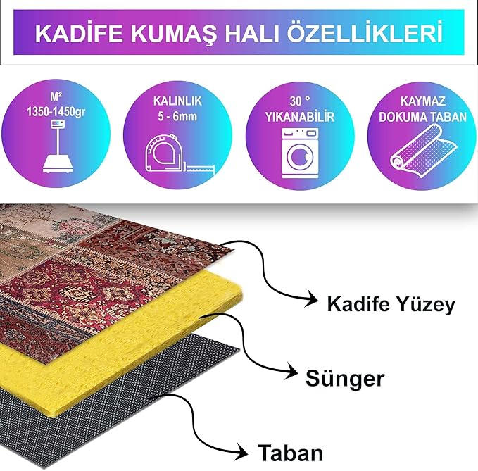 Yıkama Kolaylığı Günlük olarak elektrik süpürgesiyle temizlenebileceği gibi halılarımız ayrıca çamaşır makinesinde de yıkanabilir. 30-40 derecede yıkamanızı önermekle beraber yıkarken ultra güçlü kimyasal madde kullanmanızı tavsiye etmiyoruz.