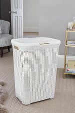 Desenli Plastik Çamaşır Sepeti Beyaz
