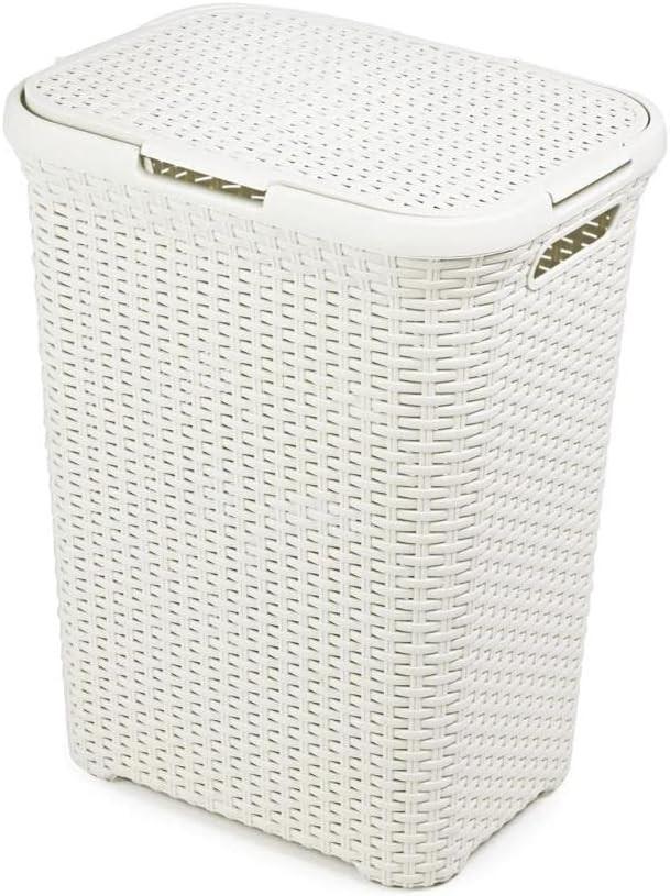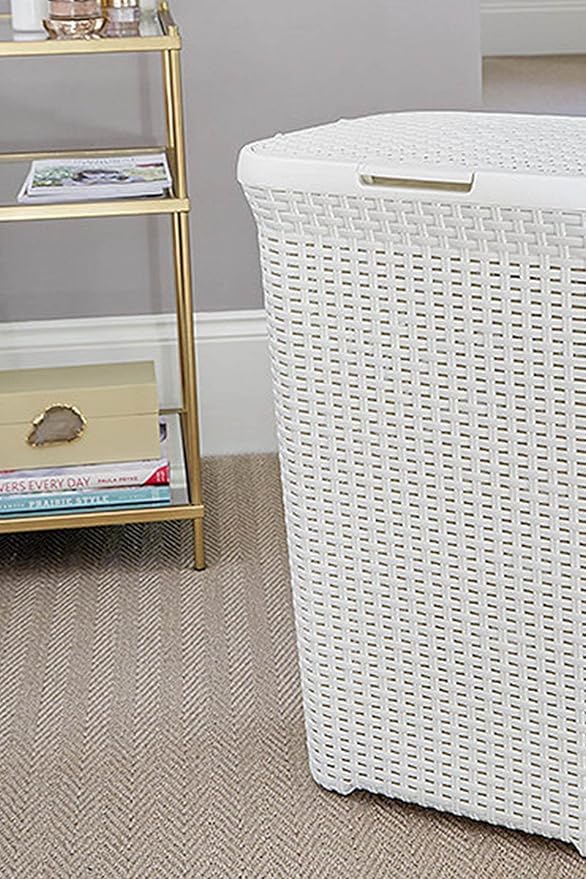 Desenli Plastik Çamaşır Sepeti Beyaz