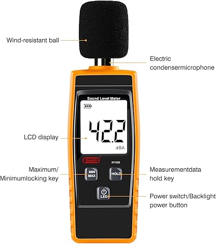 Geniş kullanım alanı: Bu ses ölçüm cihazı, farklı ortamlarda ses kalitesi kontrolünün ölçüm gereksinimlerini karşılamak için tasarlanmıştır. Müzik kayıtlarını, komşuların gürültü şikayetlerini, endüstriyel ortamları, ofis ortamlarını, konuşma terapisini ve daha fazlasını test etmek için idealdir. Desibel ses seviyesi bıçağı, ortam ses seviyesini ölçmek için bir araçtır, örneğin fabrikaların, atölyelerin, okulların, konut alanlarının, sokakların, ses vb. yakınlarındaki ses seviyesi.