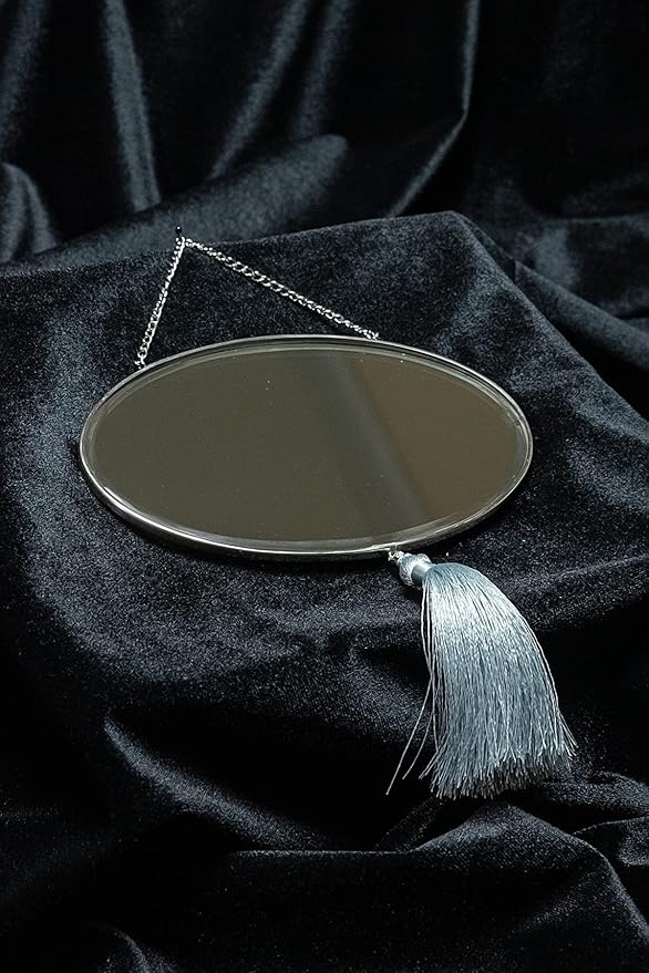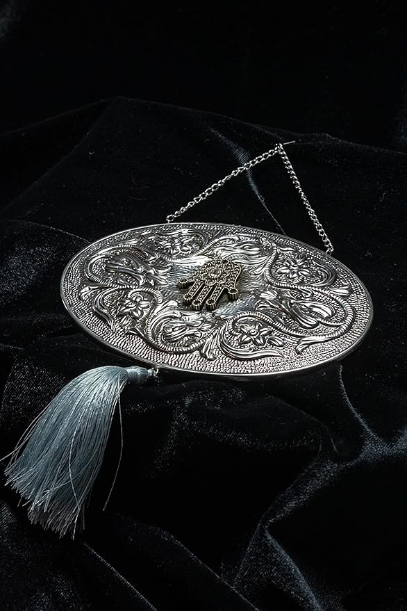 Design.925 Ayar Gümüş El Yapımı Duvar Aynası, Gri Püsküllü Fatma’nın Eli Motifli
