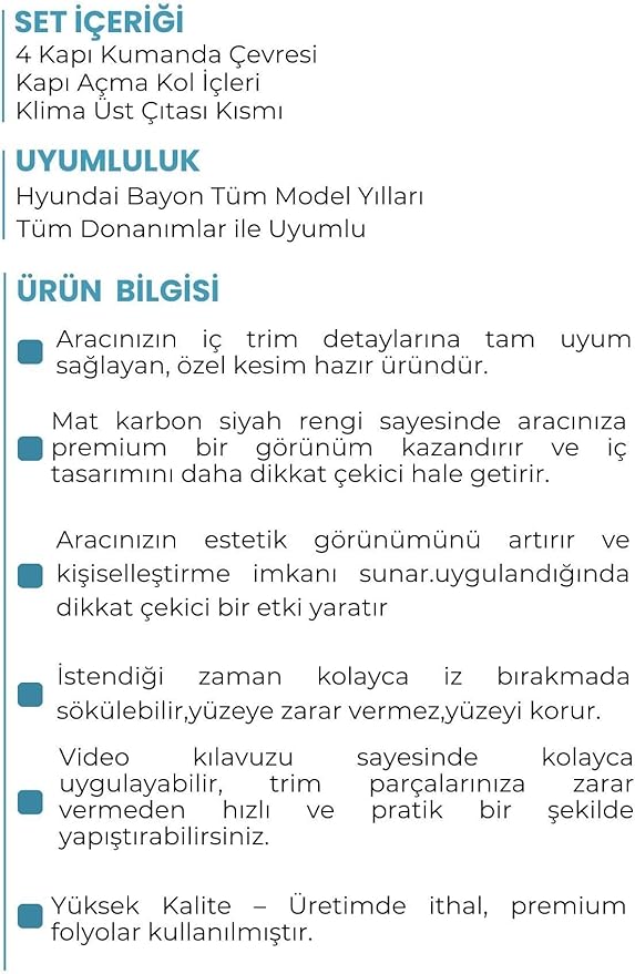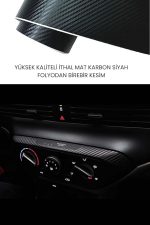 Design Hyundai Bayon ile Uyumlu İç Trim Folyo Kaplama Set Ayna Katlama Butonsuz, Mat Karbon Siyah