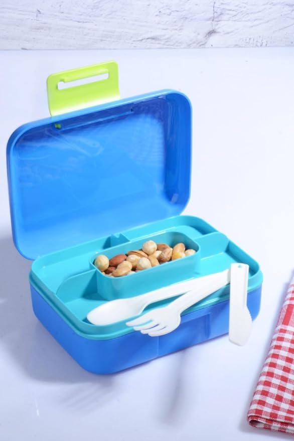 Design Kendinden Kaşıklı 5 Bölmeli 2 Katlı Beslenme Kutusu (Mavi)