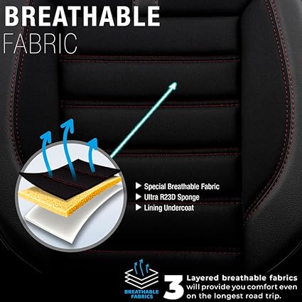 Design Ortopedik Ekstra Destekli Oto Koltuk Kılıfı Tam Set (Siyah-Kırmızı)