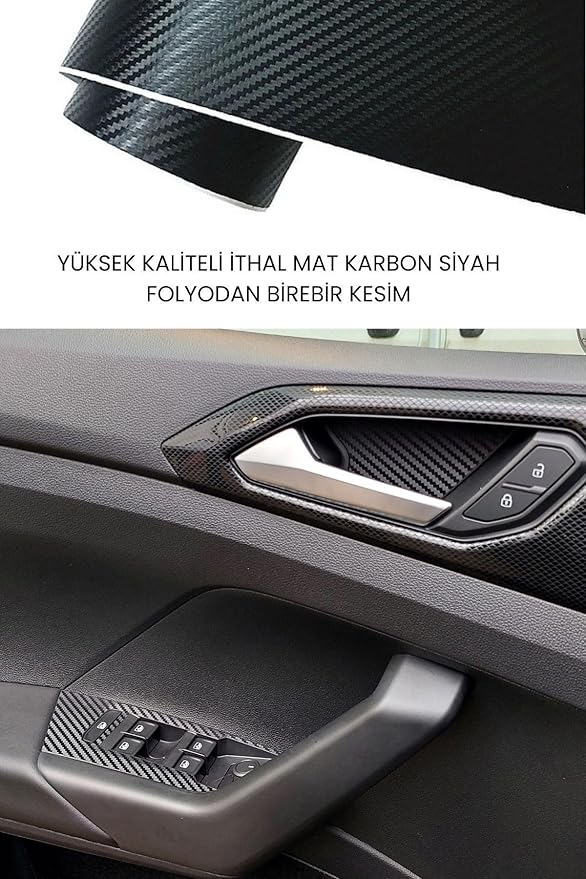 Design Volkswagen TAİGO ile Uyumlu İç Trim Folyo Kaplama Set, Mat Karbon Siyah