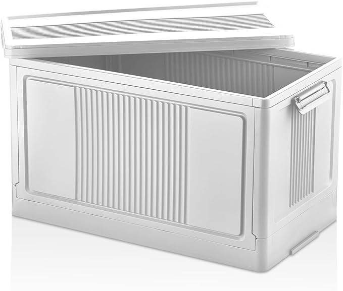 Dev Boy Katlanır Kilit Kapaklı Kasa 55 Litre Hacimli, Yer Kaplamayan Portatif Saklama Kutusu Ardiye, Balkon, Mutfak, Kiler, Bahçe ve Araç Bagajı İçin Güvenli Organizer (BEYAZ)