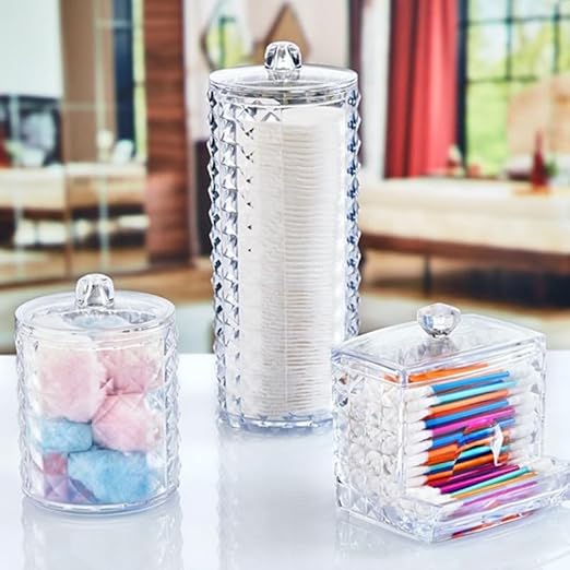 Diamond 3'lü Set Makyaj Organizer Banyo Düzenleyici Pamukluk Seti, Pamuklu Kulak Çubuğu Organizeri, Makyaj Pamuk OrganizeriDiamond 3’lü Set Makyaj Organizer Banyo Düzenleyici Pamukluk Seti, Pamuklu Kulak Çubuğu Organizeri, Makyaj Pamuk Organizeri