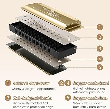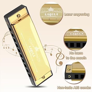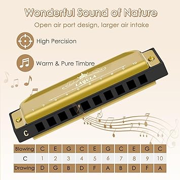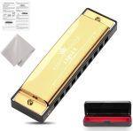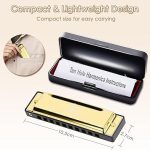 diatonik Blues mızıka, C Blues Harp mızıka, 10 delikli, koruyucu kılıflı, standart mızıka, yetişkinler, profesyoneller, yeni başlayanlar ve öğrenciler için hediye (altın)