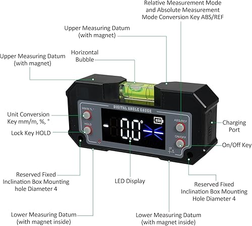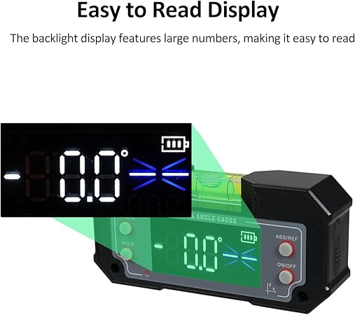 ÇOK İŞLEVLİ 3’Ü 1 ARADA ALET: Bu açı bulucu, dağınık alet çantanızı bir yük haline getirmek için dijital bir seviye ve açı ölçerin işlevlerini bir araya getirir. Bir eğim ölçer olarak, ahşap işçiliği için açıları ölçer. Bu açıölçer ve eğimölçer seviyeleri, açıları ölçebilir ve göreceli açıları kontrol edebilir. 3D Yazıcı taban tahtası yatay düzeltmesi için harika bir alet!
