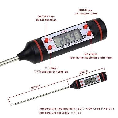 Dijital Ekranlı Mutfak Termometresi Dijital Termometre Sıcaklık Ölçer Et Süt Derece Ölçer