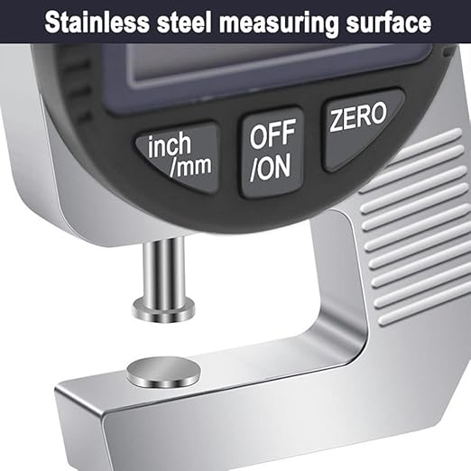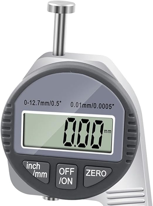 Kalınlık ölçer 0-0,5″ (0-12,7 mm) ölçülerinde olup, 0,0005″ çözünürlüğe sahiptir.