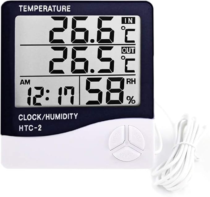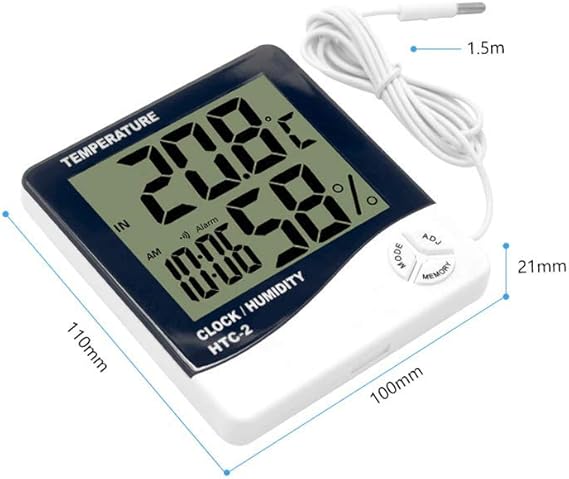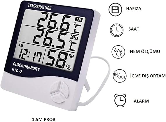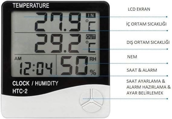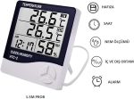 Dijital Termometre Saat Isı Sıcaklık Nem Ölçer Htc-2