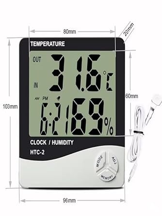 Yüksek Hassasiyetli Dijital Termometre ve Nem Ölçer: HTC-2, oda sıcaklığı ve nem oranını ±1°C ve ±5% RH hassasiyetle ölçen gelişmiş dijital sensörlere sahiptir – oda termometresi, problu termometre veya bebek odası termometresi olarak güvenle kullanılabilir.