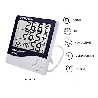 Dijital Termometre Sıcaklık Ve Nem Ölçer Higrometre Masa Alarm, Problu Dijital Termometre, Problu Sıcaklık ve Nem Ölçer