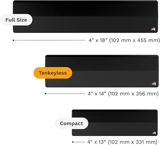 Detaylar Ergonomik Bilek Desteği Masif, ABD kaynaklı sert ağaç tasarımı Kaymaz Kauçuk Ayaklar Kalınlık: 0,79” (20 mm) %65 / %75 (Kompakt): 4” x 13” (102 mm x 331 mm) %87 (TKL): 4” x 14” (102 mm x 356 mm) %100 (Tam Boyut): 4” x 18” (102 mm x 455 mm)