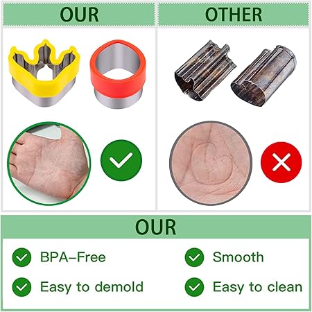 Koruyucu tasarım: Çocuklar için ekmek kalıplarımız paslanmaz çelikten konforlu saplı (PP). Çocuklarınızla pişirmenin keyfini güvenle çıkarmak ve onları rahatlatmak için çocuklarınızın parmaklarını metal kenarlardan koruyabilir