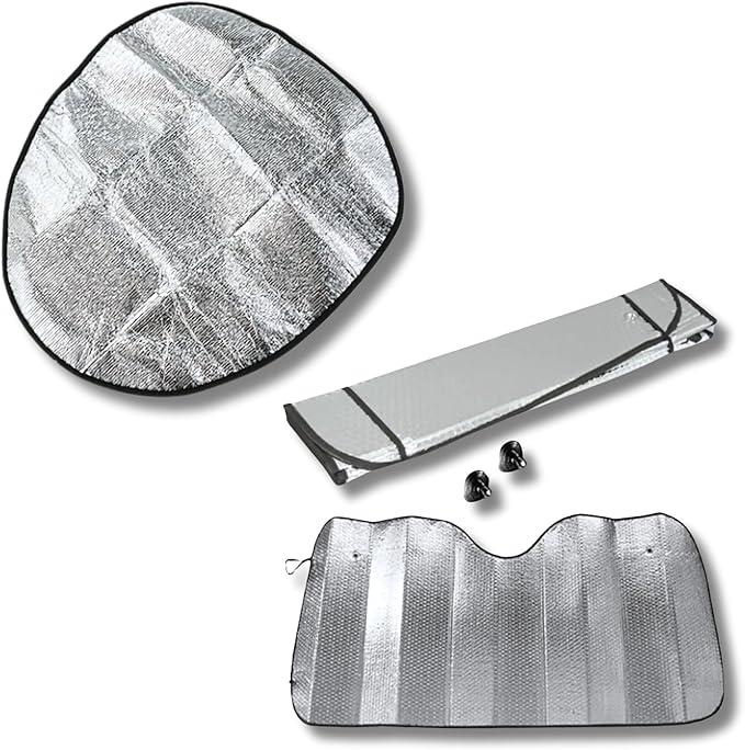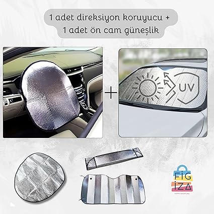 Direksiyon ve Torpido Güneşlik Seti 2li – Katlanabilir Direksiyon Güneşliği (50×50 cm) + Parlak Balonlu Vantuzlu Ön Cam Güneşliği (130×60 cm)- Evrensel Uyumluluk, Isı ve Güneş Koruması