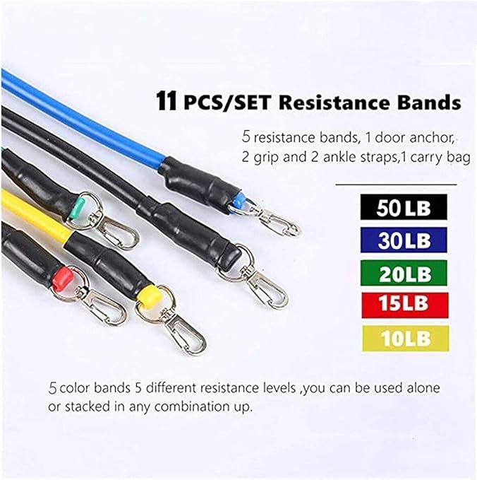 Direnç Lastiği Seti 11 Parça – Fitness, Pilates, Evde Spor ve Vücut Geliştirme Egzersiz Seti