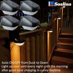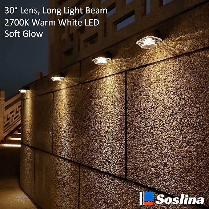 【Otomatik ON/OFF & yüksek verimlilik enerji tasarrufu】Soslina solar lamba dış mekan parlaklık 2700K sıcak beyaz LED’lerle kullanılır, otomatik olarak alacakaranlıkta ve şafak vakti açılır. Solar lamba güneş ışığından toplanan enerjide çalışır, tam şarjdan sonra çit, bahçe, güverte için tüm gece aydınlatması sağlar. Her gün manuel olarak açmaya/kapatmaya gerek yok.
