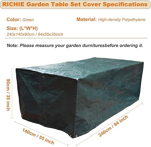 Dış Mekan Mobilya Seti Örtüleri – Su Geçirmez ve Rüzgar Geçirmez, Rattan Bahçe Masa ve Sandalyesi için Anti-UV, 240x140x90cm Dikdörtgen, Yeşil