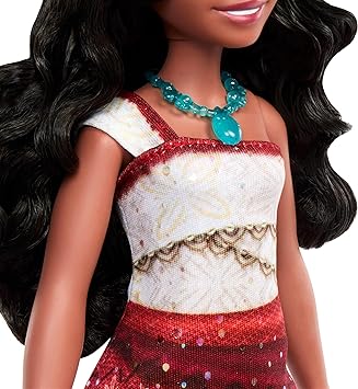 Elbise ve halhal takan bir Moana bebeği ve dört aksesuar içerir