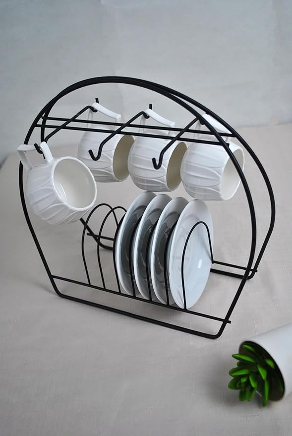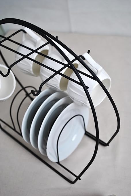 Diyarı Siyah Fincan Takımı Standı, Kahve Fincan Askısı Tabaklı Tezgah Üstü & 6’lı