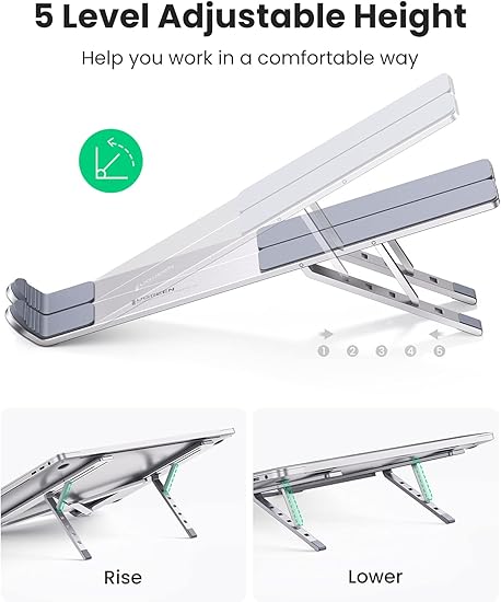 Ayarlanabilir ve Sağlam: Birinci sınıf alüminyum alaşımdan yapılmış UGREEN dizüstü bilgisayar standı, dizüstü bilgisayarı 5 farklı yüksekliğe yükseltmek için yüksekliği ayarlanabilir, böylece yazı yazmak ve çalışmak için daha ergonomik hale getirir. Ayrıca, bu dizüstü bilgisayar masası standı mükemmel stabilite sağlar. Çizilmeye karşı dayanıklı dolgu, bu dizüstü bilgisayar standı tutucuyu kaymadan çizilmelere karşı kullanışlı hale getirir. Boyun ağrılarına veda edin ve verimliliğinizi artırın!