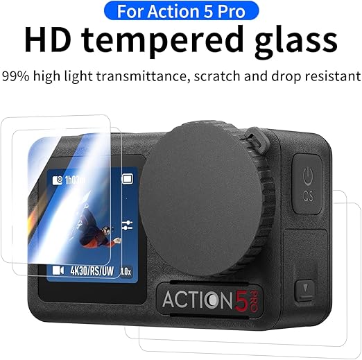 Çok Yönlü Ekran Koruması: Dji osmo action 5 pro’nuzu bu 9H temperli cam ekran koruyucusuyla koruyun, hem ekranda hem de lenste çizikleri, tozu ve günlük aşınmayı önlemek için tasarlanmıştır ve bozulmamış durumunu korur