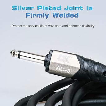 DK Gitar Bağlantı Kablosu 3.0 Metre 10ft Enstrüman Kablosu Gürültü Azaltma Ses Kablosu 6.35mm Erkek Jack Ses Kablosu Elektro Gitar Bas için